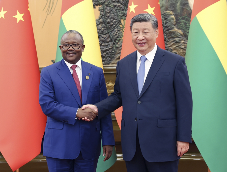 9月5日晚,国家主席习近平在北京人民大会堂会见来华出席中非合作论坛北京峰会的几内亚比绍总统恩巴洛。新华社记者 姚大伟 摄